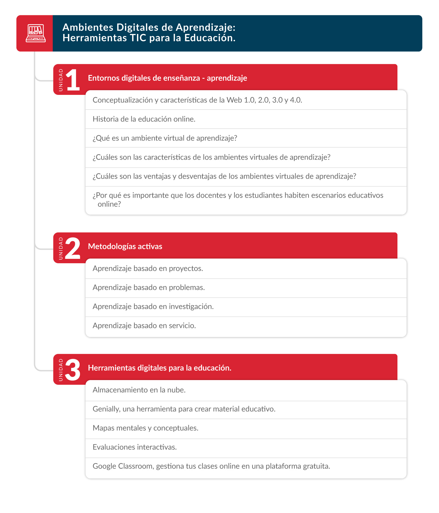 Estudiaremos en este curso las diferentes herramientas que conforman los ambientes digitales de aprendizaje, desde su conceptualización, pertinencia y funcionalidad.
