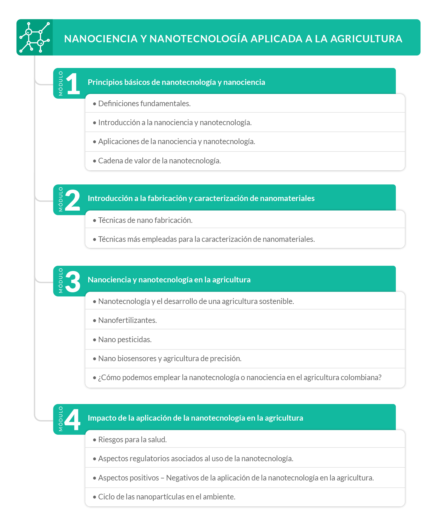 Este curso te expondrá la importancia del estudio de la nanotecnología y la nanociencia para el desarrollo de la agricultura en Colombia, mostrándote el concepto "nano" y sus aplicaciones en sus diferentes sectores industriales y de servicios.